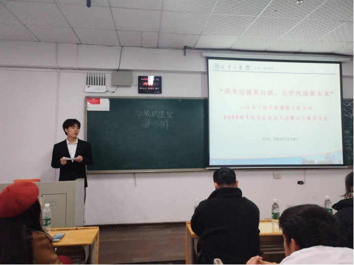 2024年12月6日下午14:30,土木工程专业建筑工程方向2024级考风考纪动员大会暨安全教育大会于南华楼315教室顺利召开。出席本次会议的有辅导员彭兴明老师、范灿文老师、建工党支部委员、建工24级各班班助以及24级建工全体同学,会议由韦彪同学主持。
