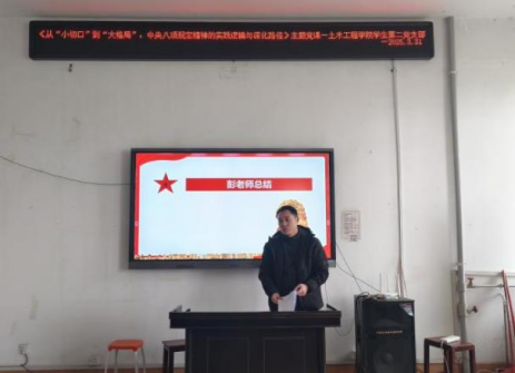 会议伊始,由彭老师带领学习中共八项规定的背景与意义以及推进全面从严治党的具体工作内容。接着,观看影片,进一步了解党和