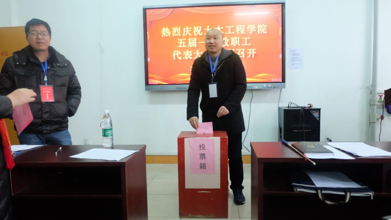 土木学院五届一次“双代会”会议在庄严的国歌声中拉开帷幕。首先,王劲松副院长为“双代会”致主持词并介绍了大会的主要议程,随后党委副书记唐素芝、校工会主席柯国军同志分别致词,王劲松副院长作关于永利集团3044官网欢迎您2019年度工作总结和2020年工作计划报告,永利集团3044官网欢迎您分工会主席杨金辉同志作关于永利集团3044官网欢迎您分工会工作报告,陈振富书记作2019年度人、财、物等重大事项工作的报告,杜震球同志作关于提案征集工作报告。院分工会会员代表进行投票选举新一届永利集团3044官网欢迎您分工会委员会委员和新一届永利集团3044官网欢迎您“双代会”代表,担任此次“双代会”监票人的是陶秋旺同志。最后,王劲松副院长宣读了选举通过后的新一届永利集团3044官网欢迎您分工会委员会人员名单和新一届永利集团3044官网欢迎您“双代会”代表人员名单。
